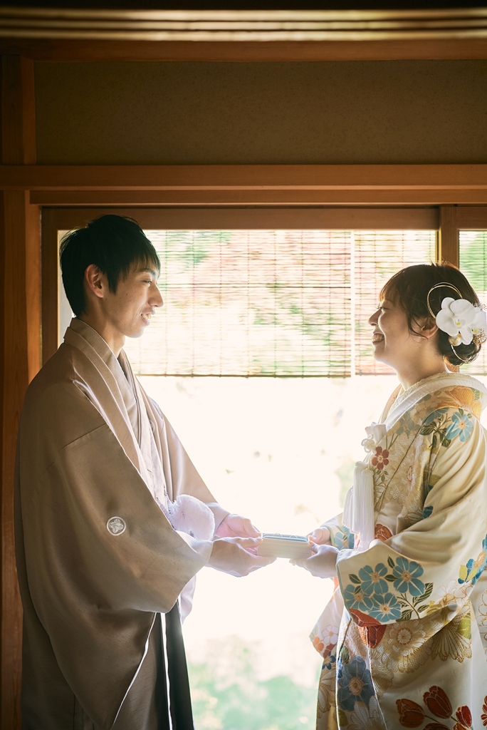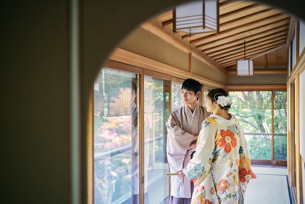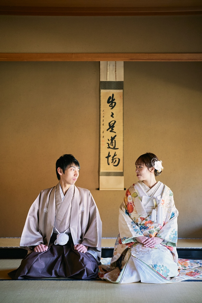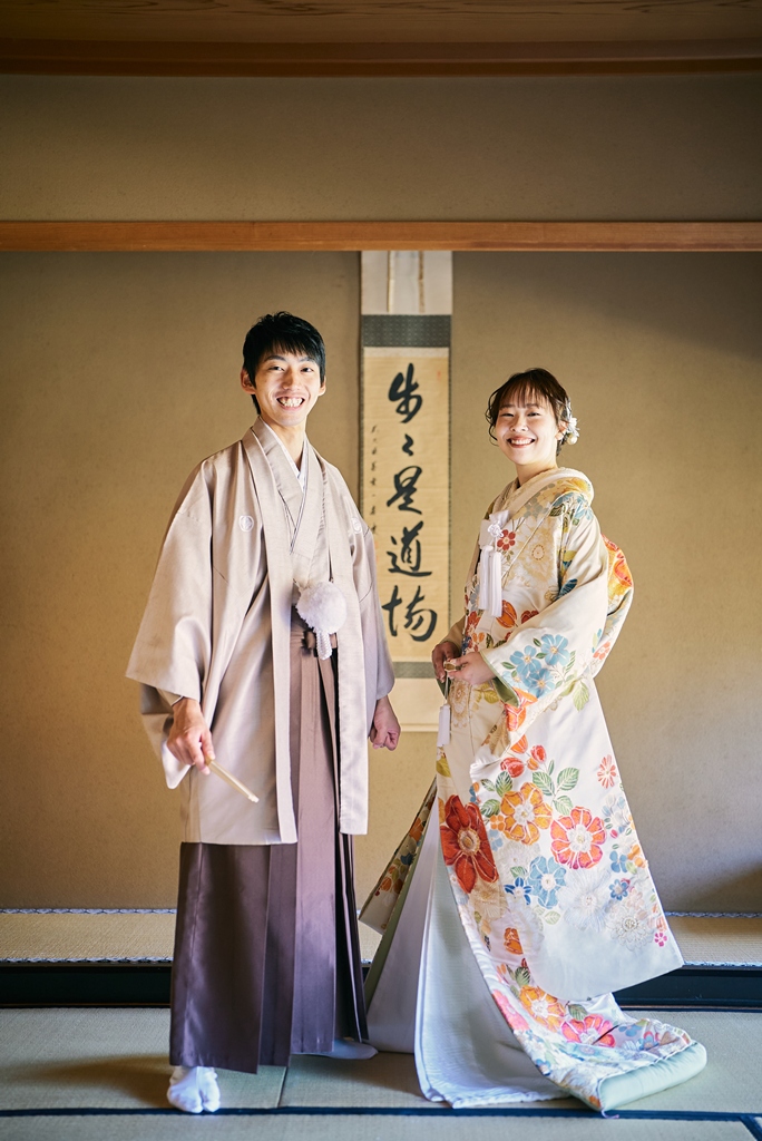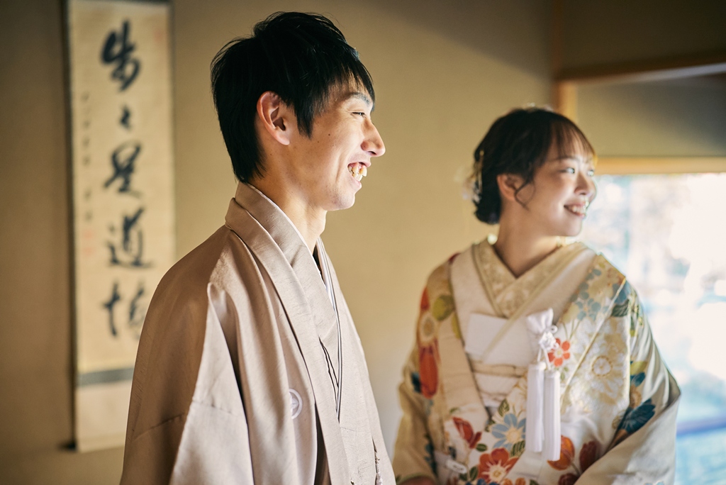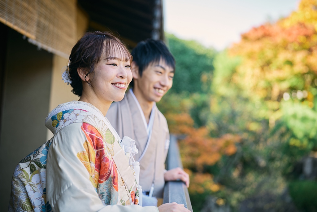 優しい色味の和装姿でウェディング撮影
