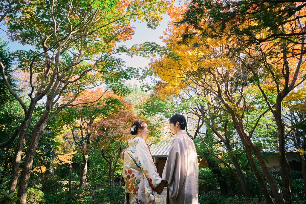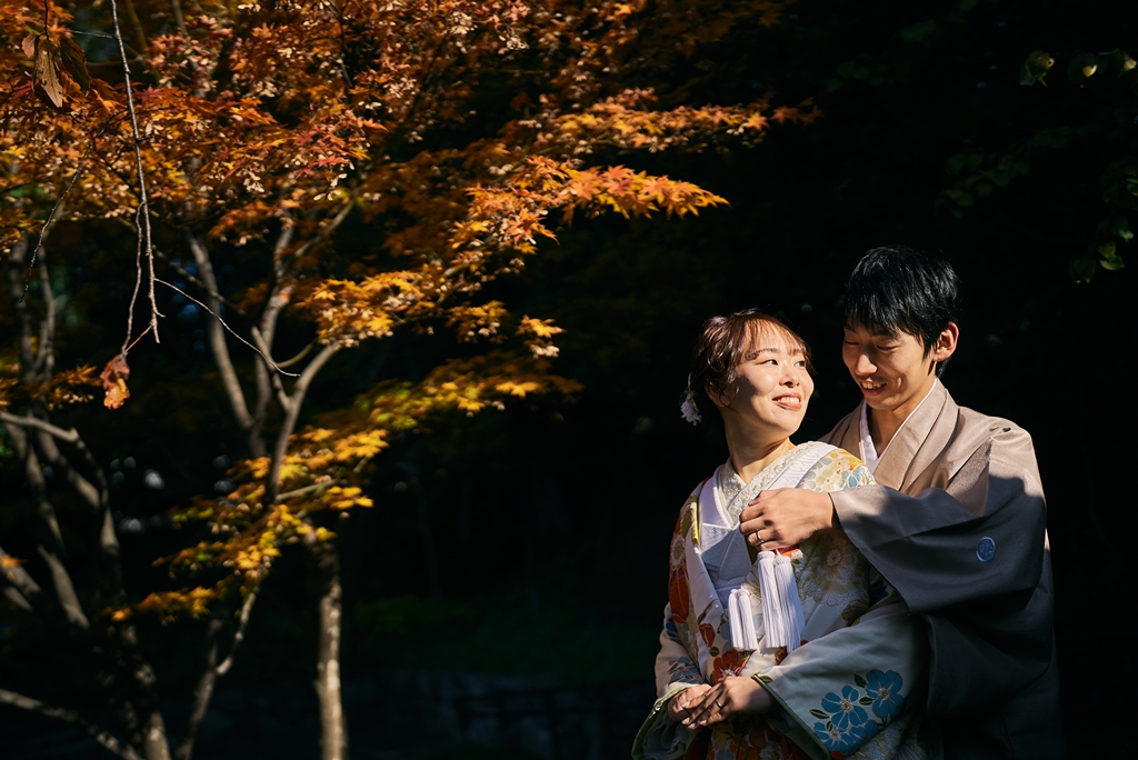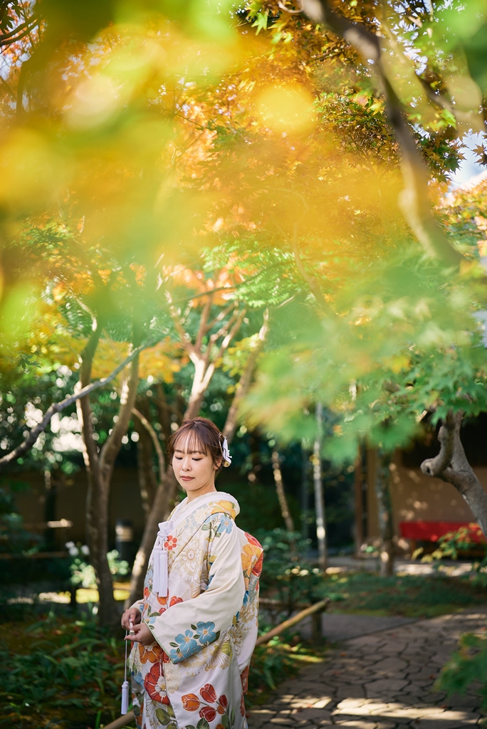 目白庭園は、紅葉の時期にとても素敵だとお話を聞き、また和室で撮影できるところも魅力的でしたのでロケーションが一番の決め手です。