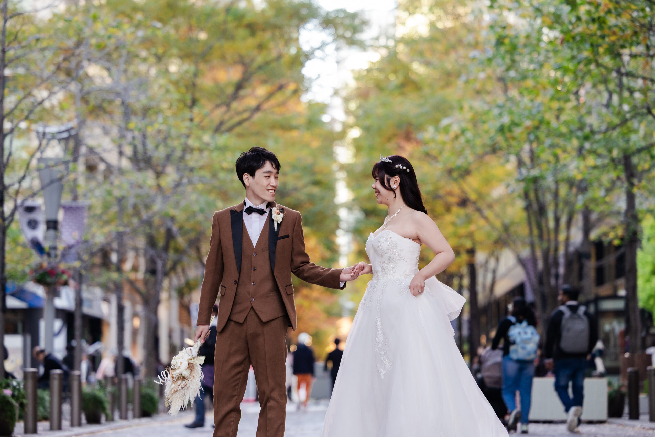 全体的にポージングを細かくアドバイスやアイデアの案をいただけて撮影しやすかったです。洋装に関しては、東京駅周辺を色々と回っていただき色んな雰囲気の写真を撮影していただけて良かったです。和装に関しては紅葉と一緒にというところも活かしていただき素敵な写真ばかりで良い思い出にもなりました。