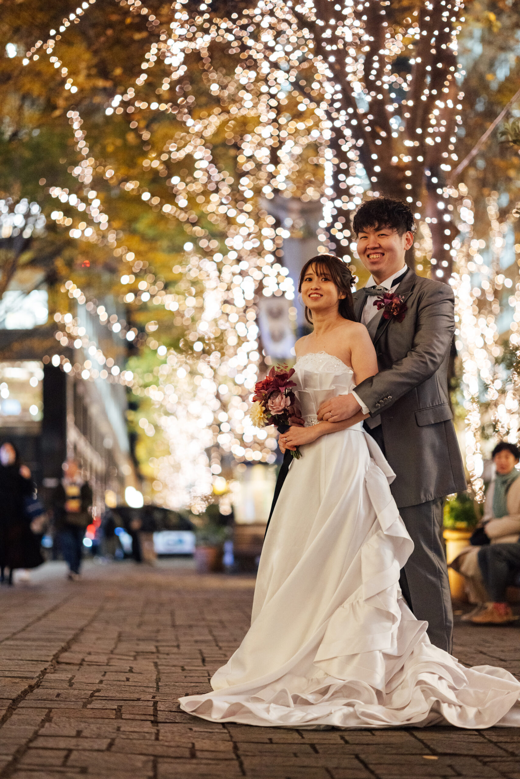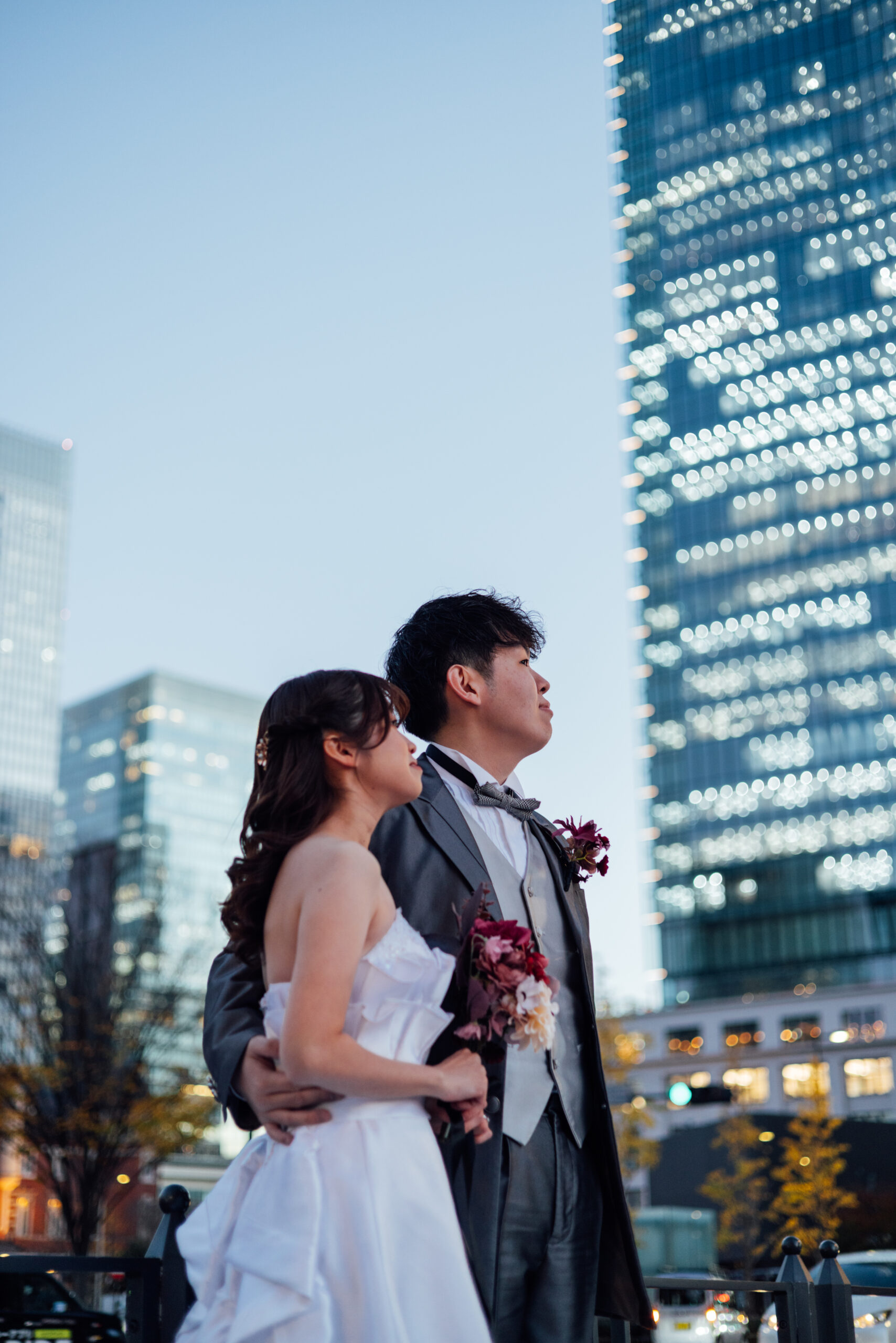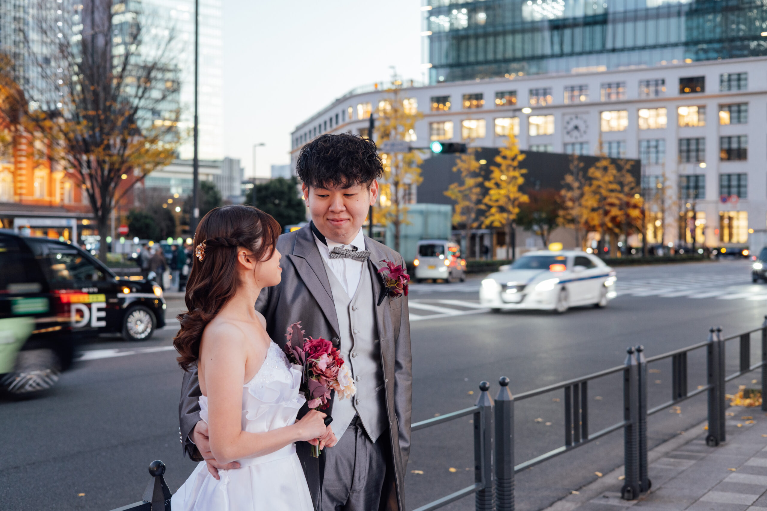 東京駅の歴史ある赤レンガと近代的な街並みが調和した景観は、特別な日の写真をより一層引き立ててくれると感じたため選びました。