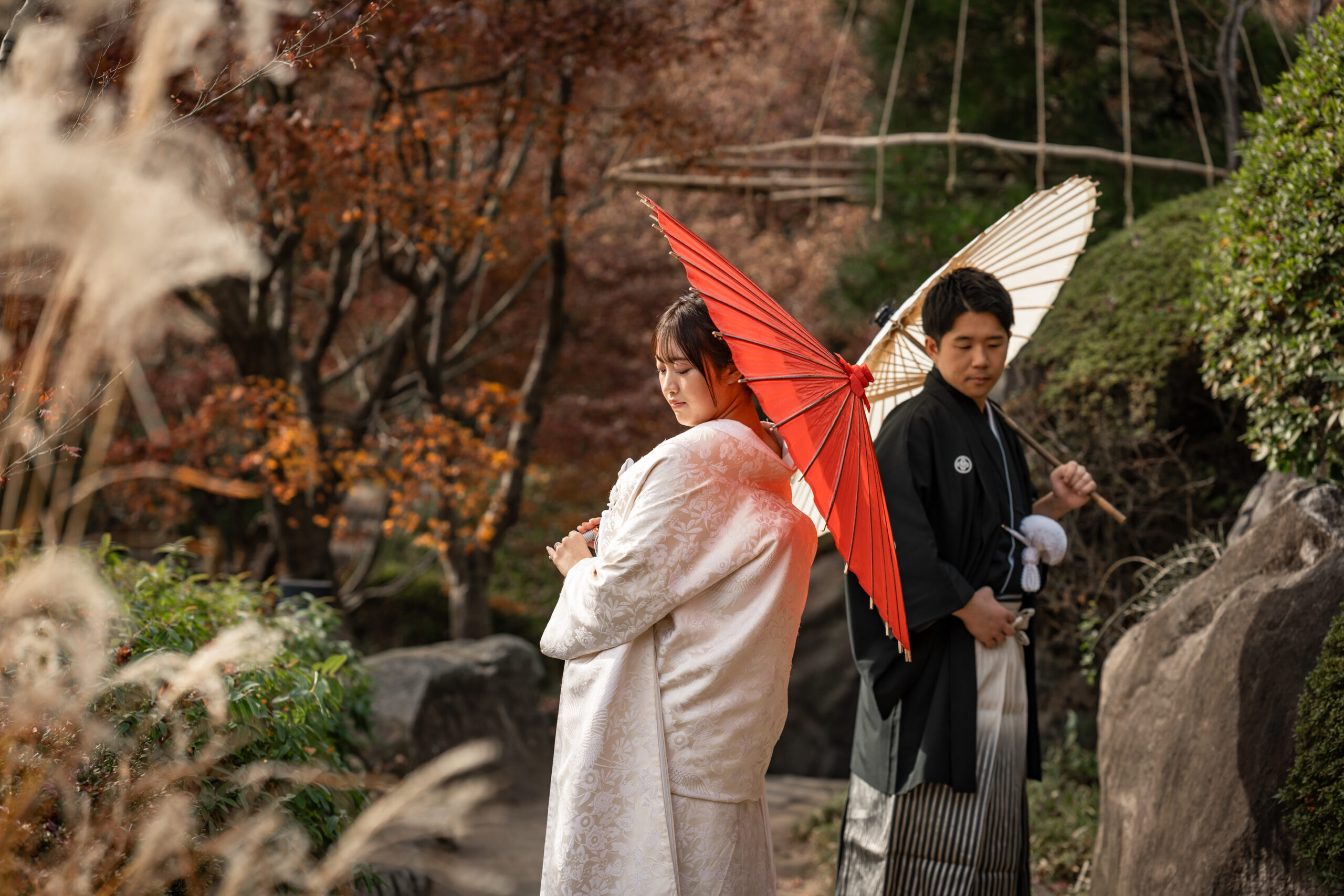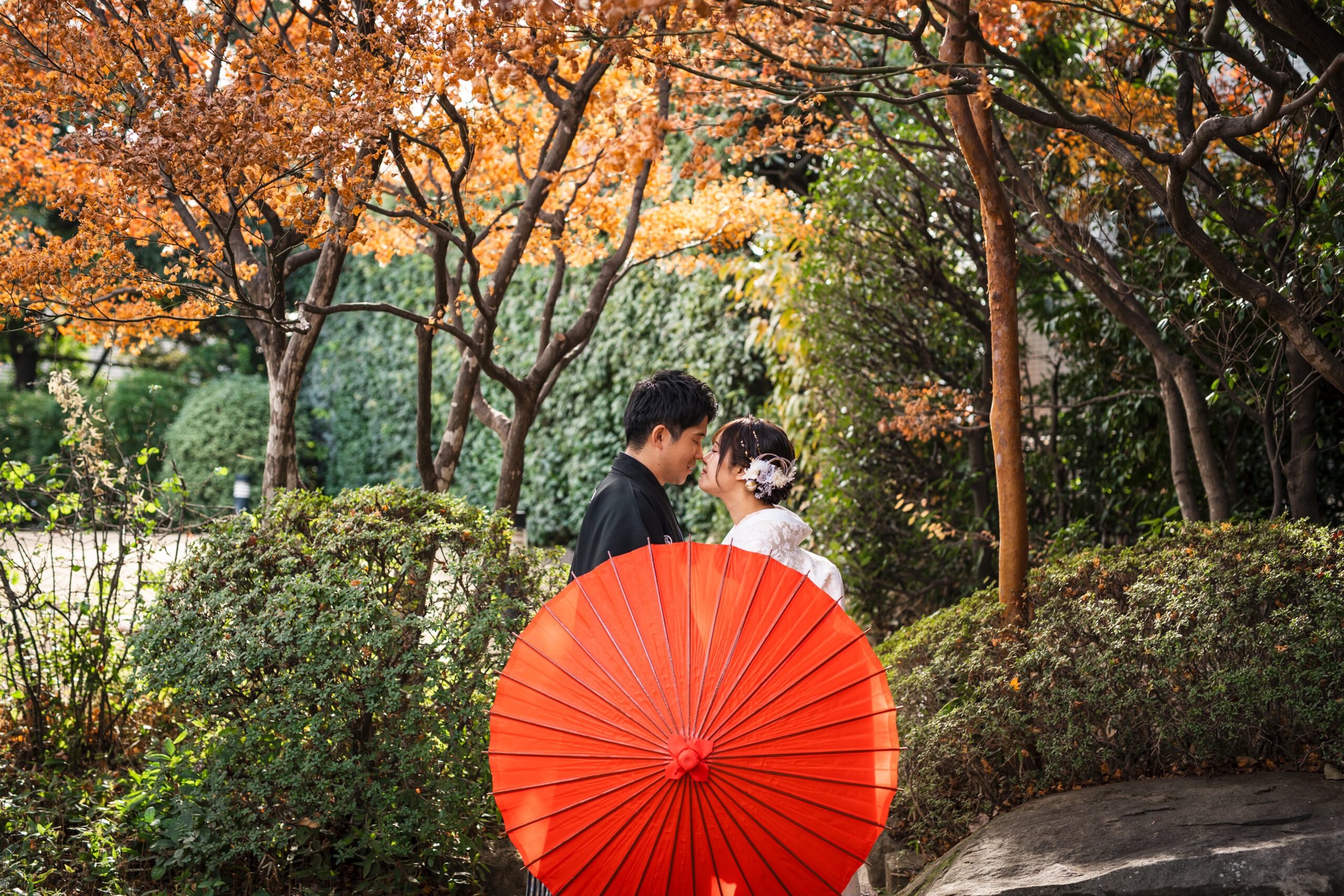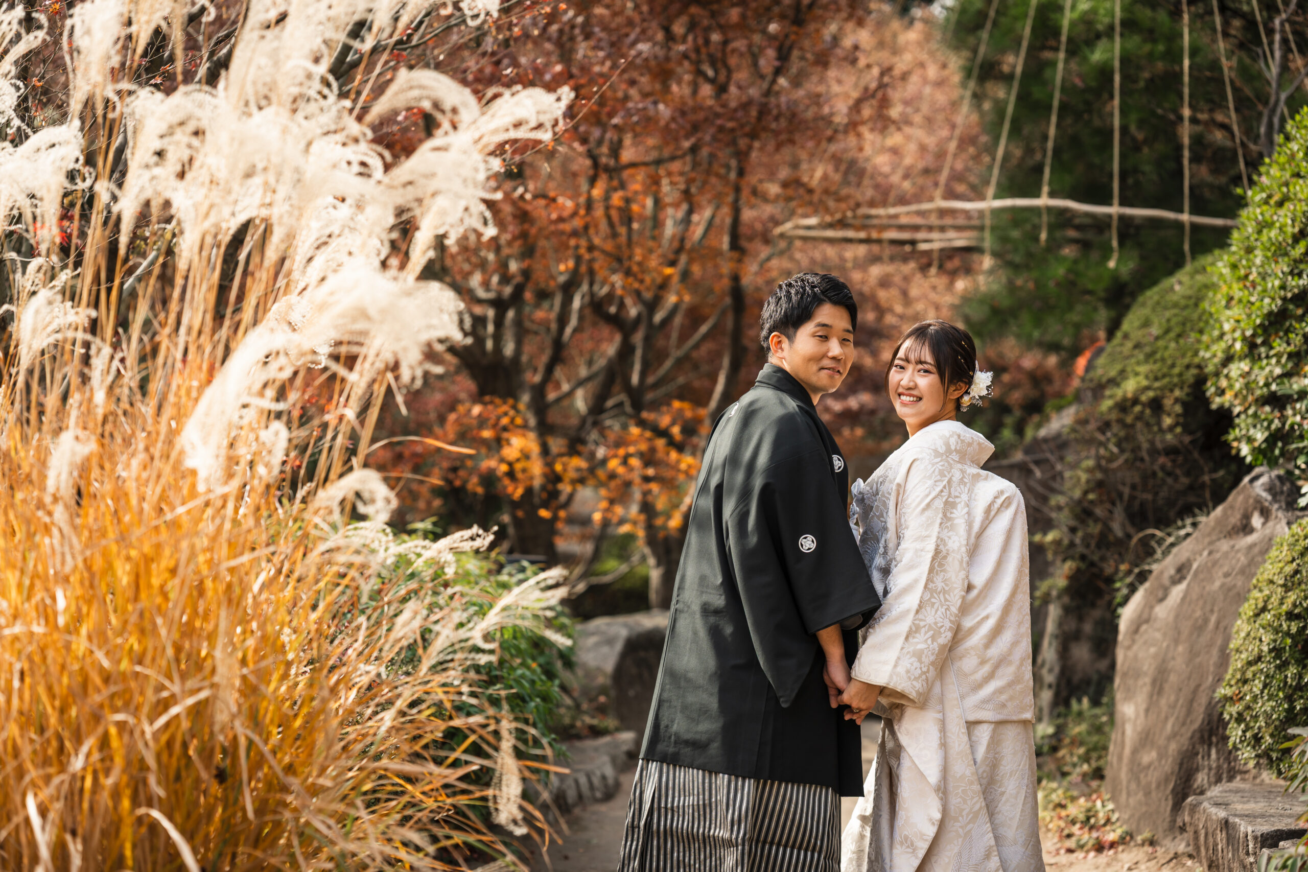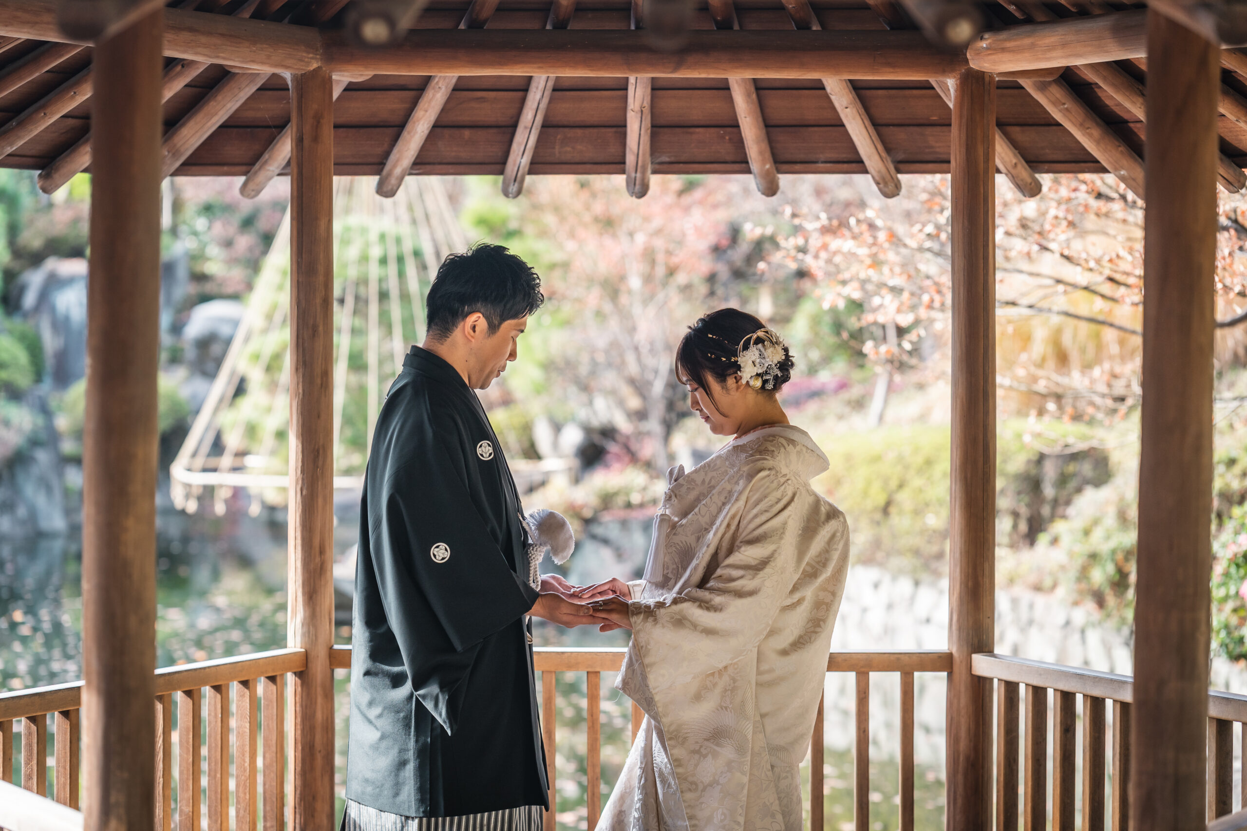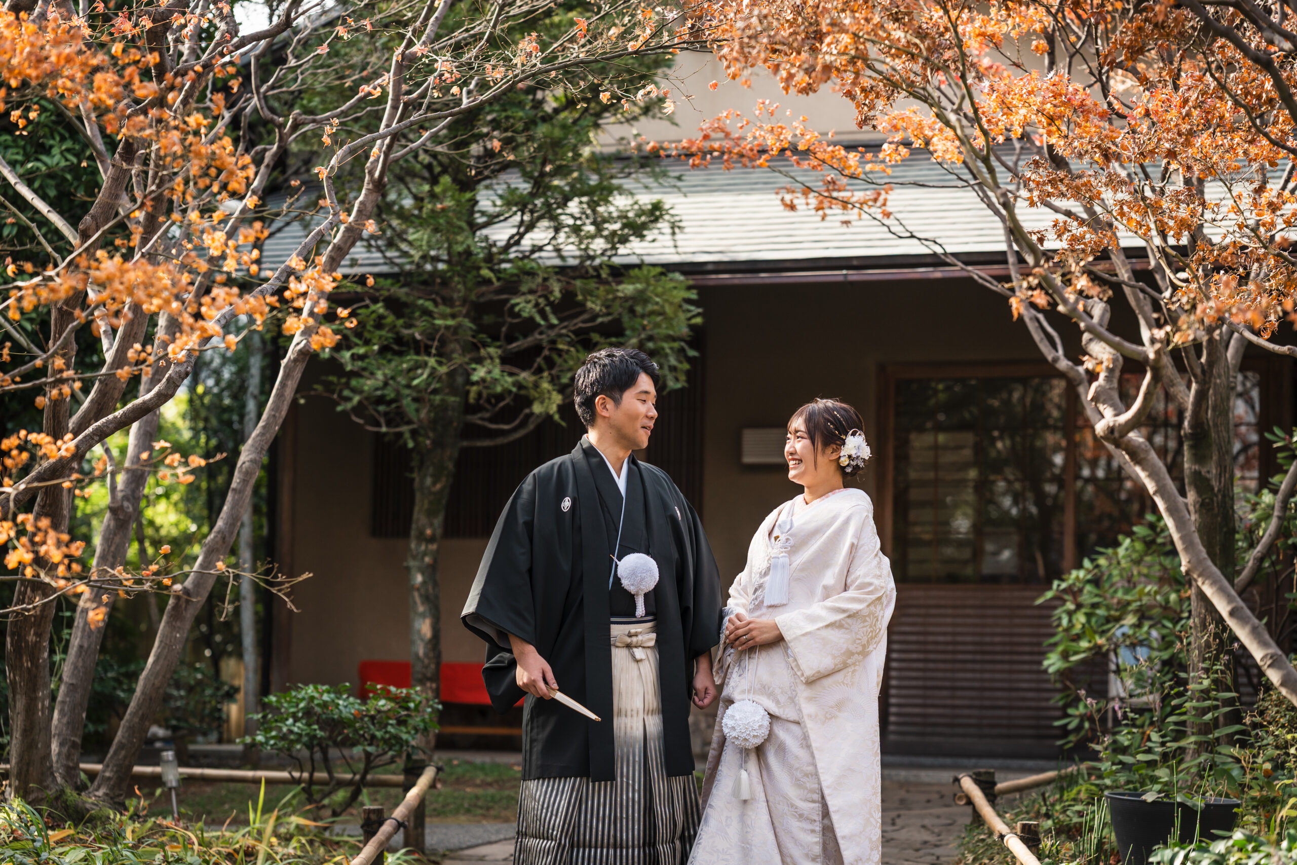 和装と洋装でがらりと雰囲気を変えた撮影を楽しんでいただき、素敵な思い出になったとのこと、本当に嬉しく思います。このたびは目白庭園での大切な撮影をお任せいただき、誠にありがとうございました。