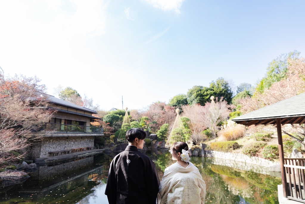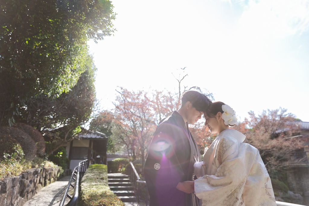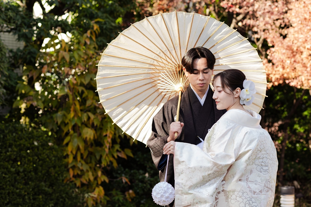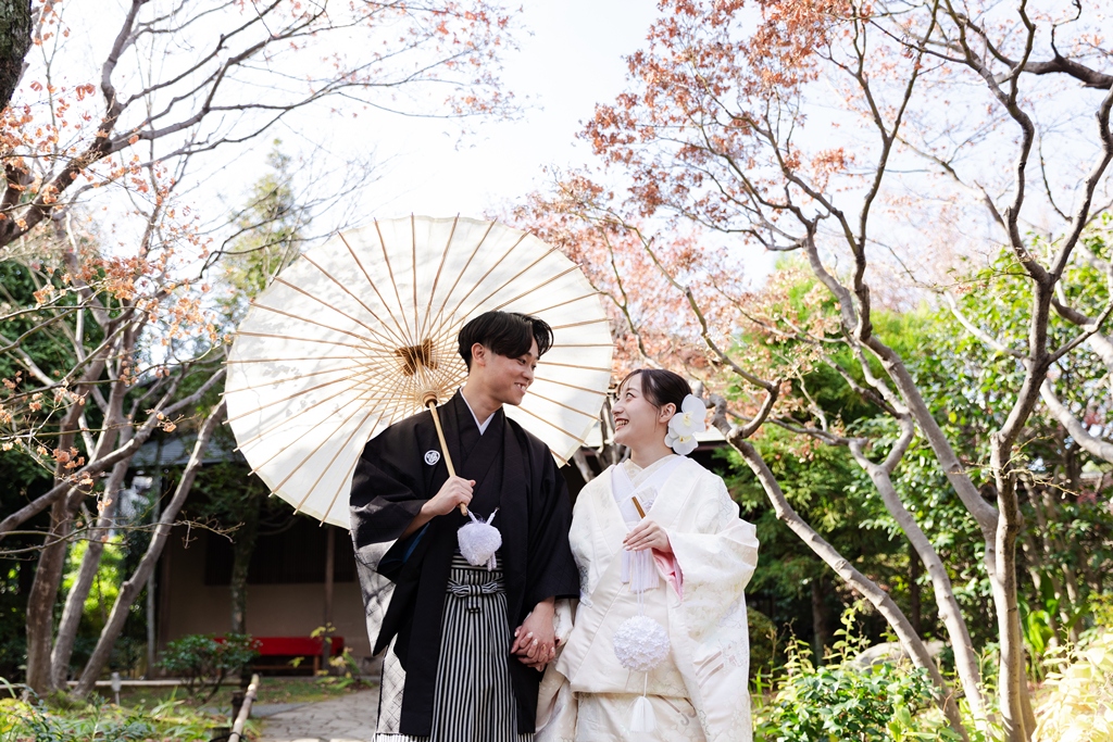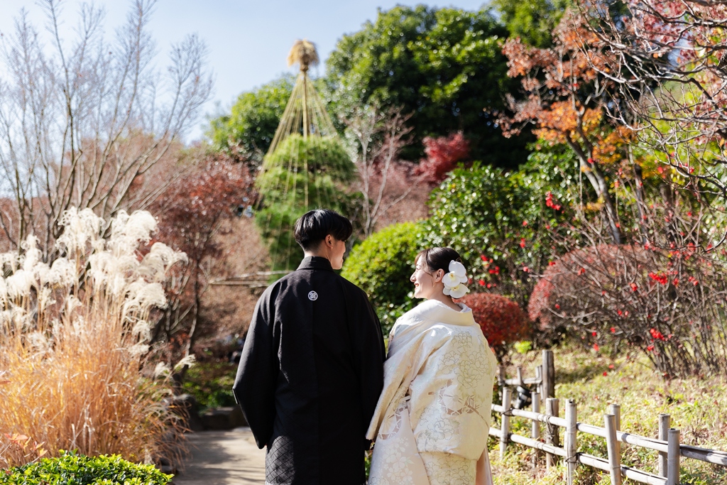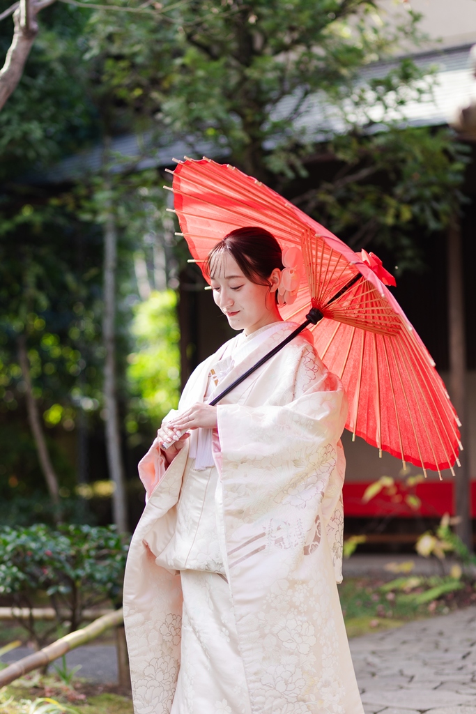 白無垢で過ごす、癒しの庭園時間を | 東京で結婚式の前撮りするならウェディングアベニュー