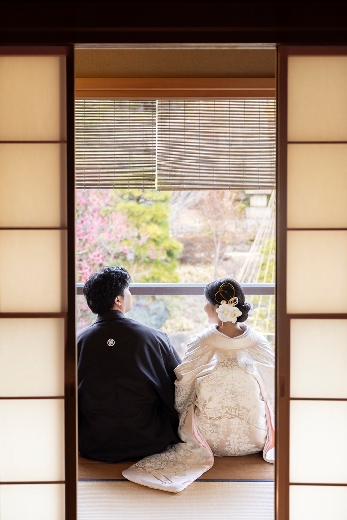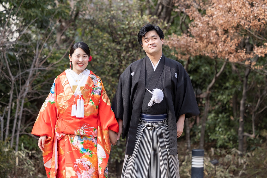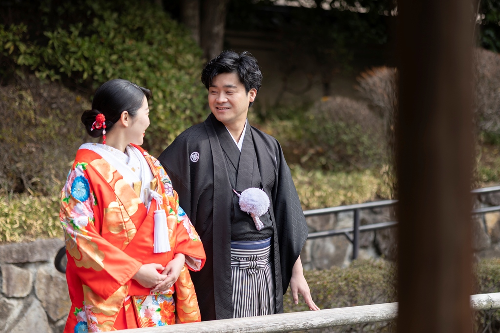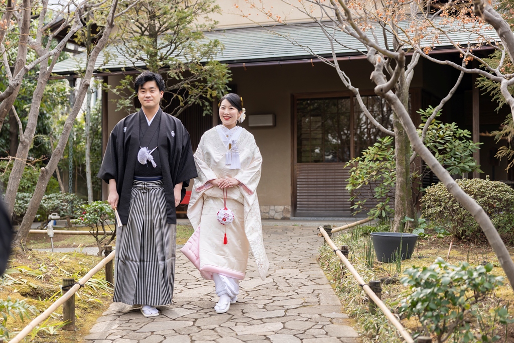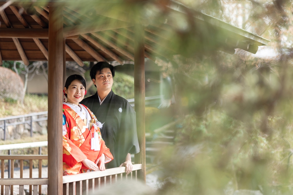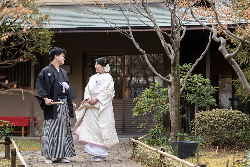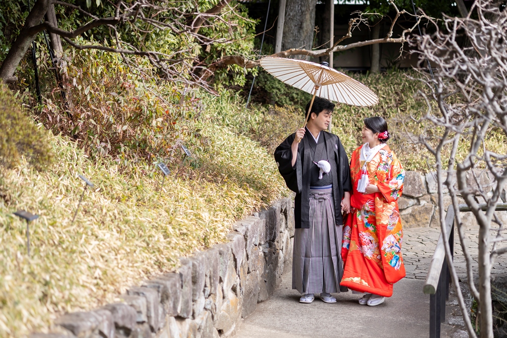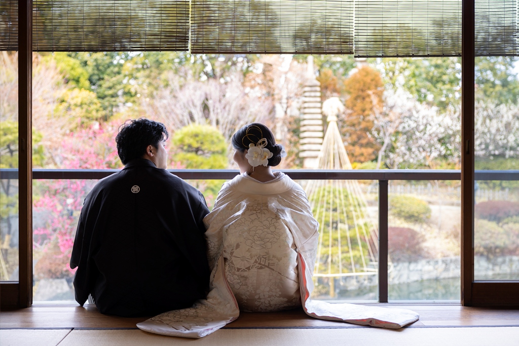 おふたりのイメージに寄り添えましたこと、大変嬉しく思っております。目白庭園の美しい景観の中、白無垢と色打掛の羽織替えを通して、