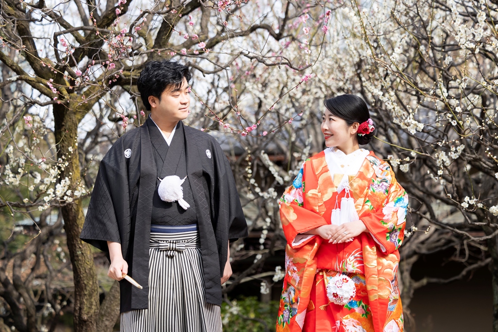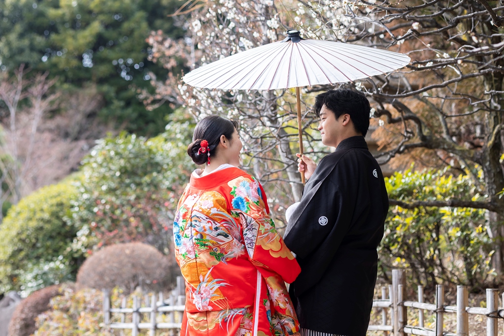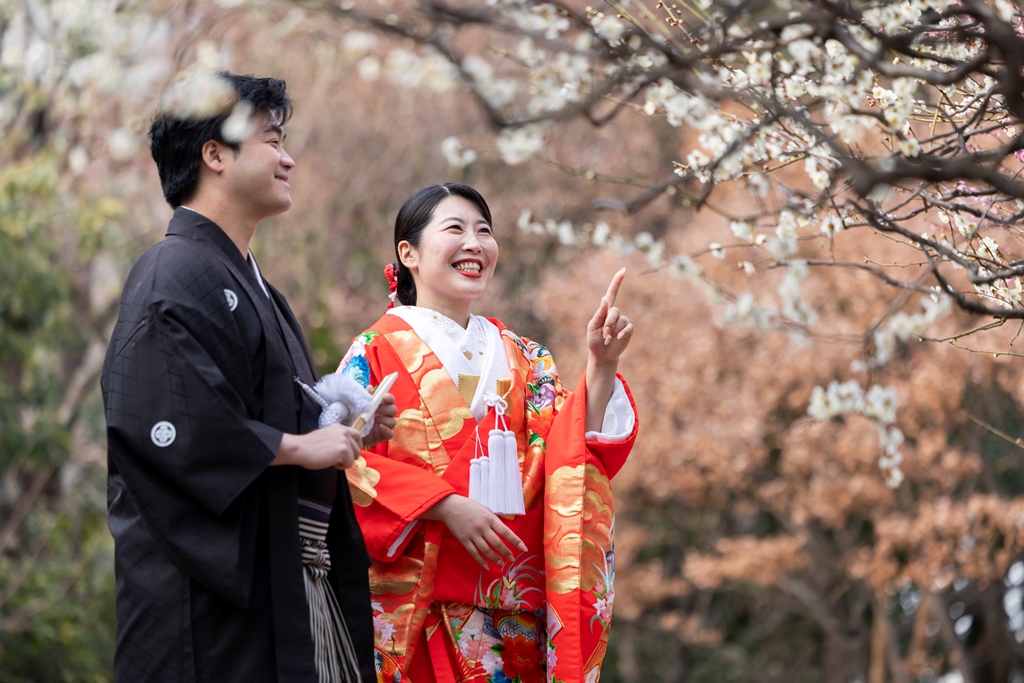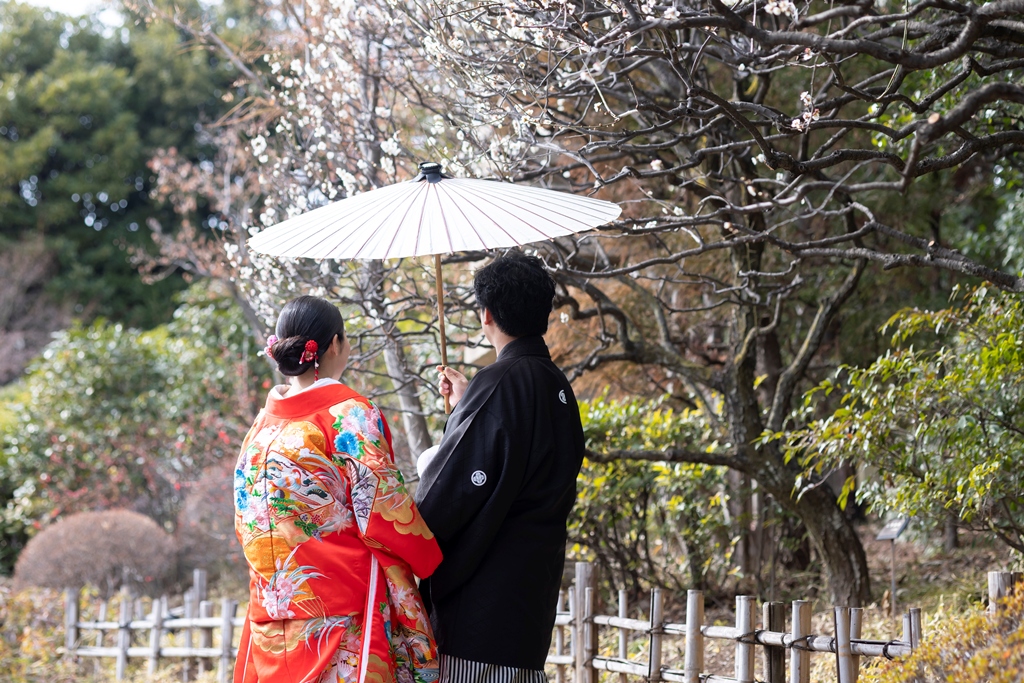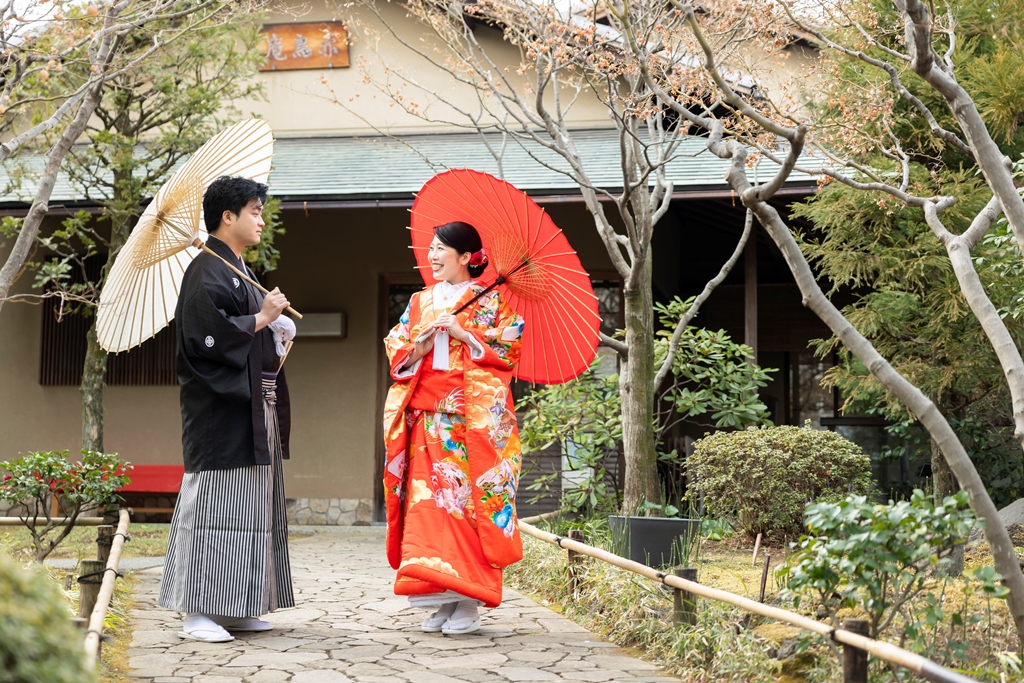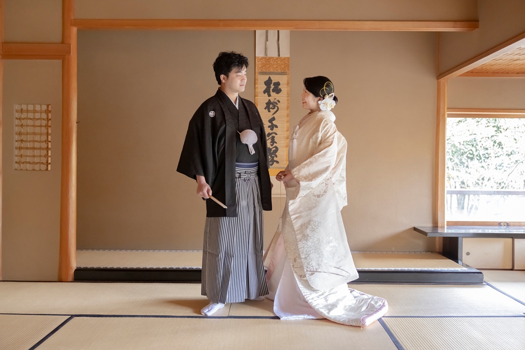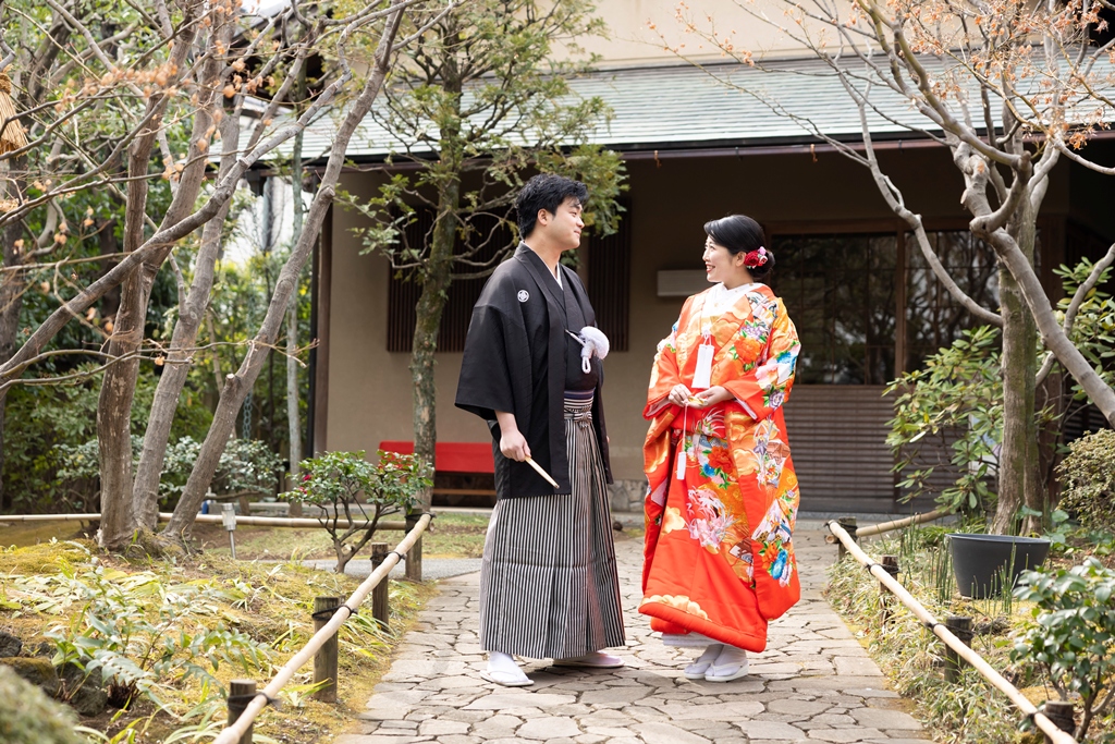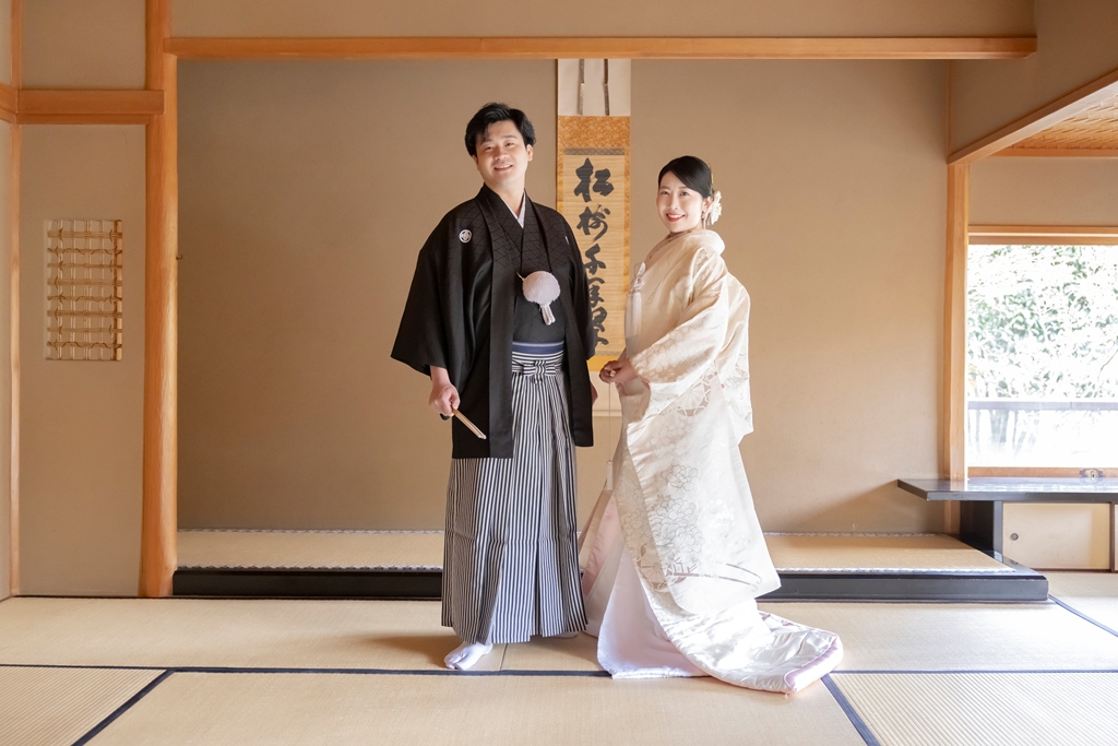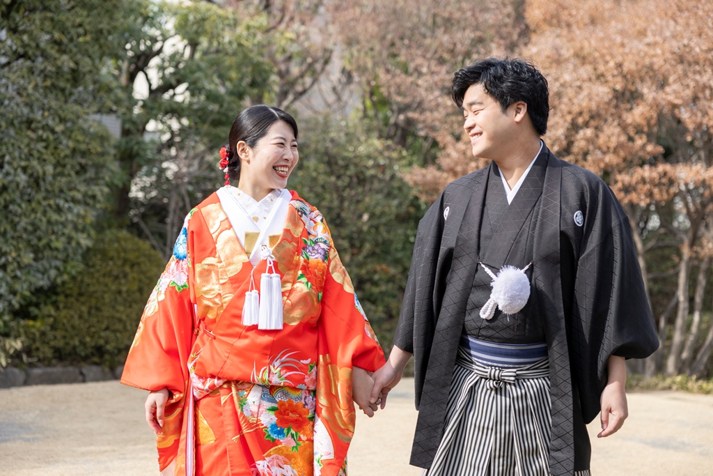 おふたりのイメージに寄り添えましたこと、大変嬉しく思っております。目白庭園の美しい景観の中、白無垢と色打掛の羽織替えを通して、